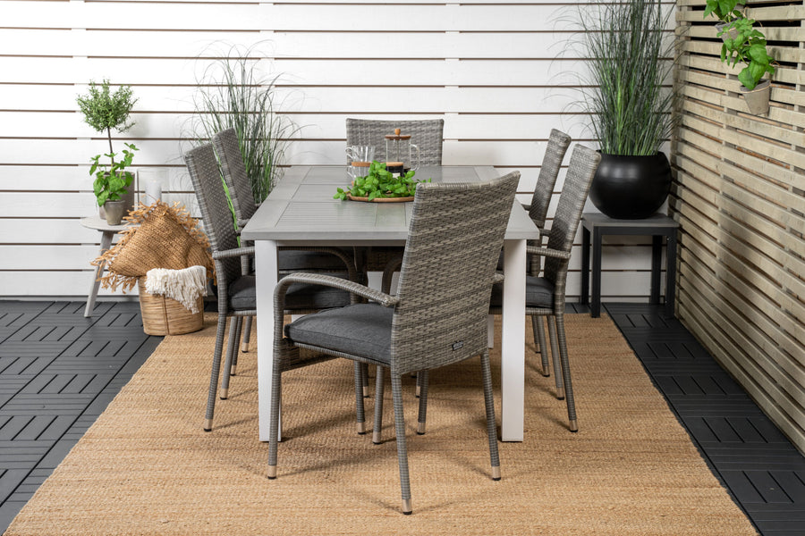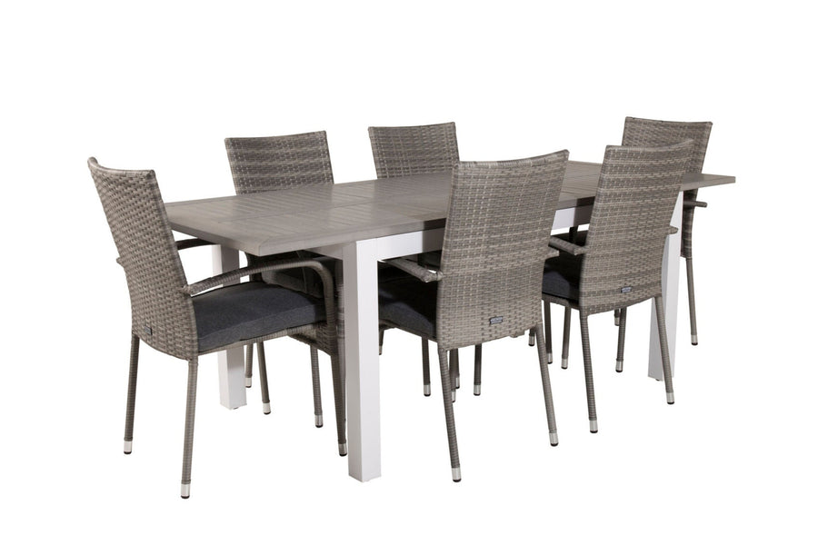 Albany ruokapöytä 152/210 - valkoinen alumiini / harmaa aintwood + Anna ruokatuoli - harmaa