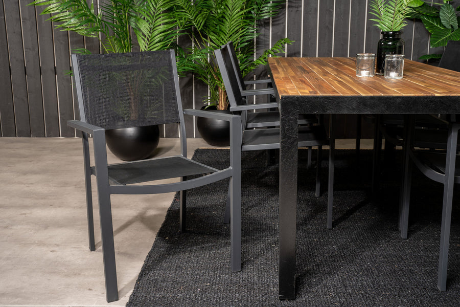 Puu ruokapöytä 200*100 - musta / akasia + Copacabana käsinojatuoli
