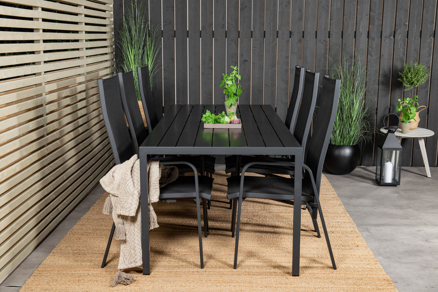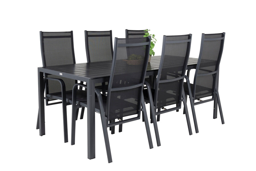 Rikkoutunut ruokapöytä 205*90 - musta / aintwood + Copacabana nojatuoli - musta
