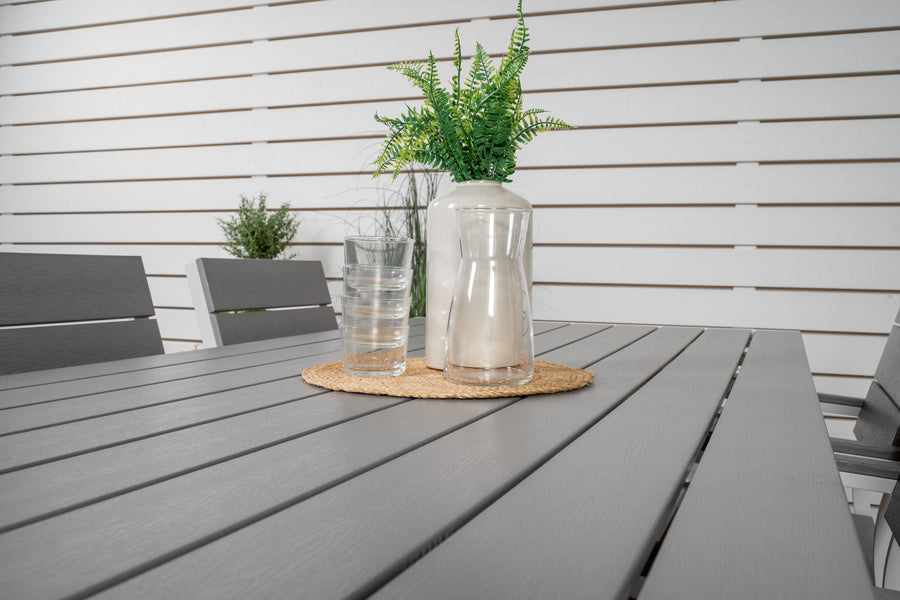 Break ruokapöytä 205*90 - valkoinen alumiini / harmaa aintwood + Levels mastotuoli - valkoinen / harmaa
