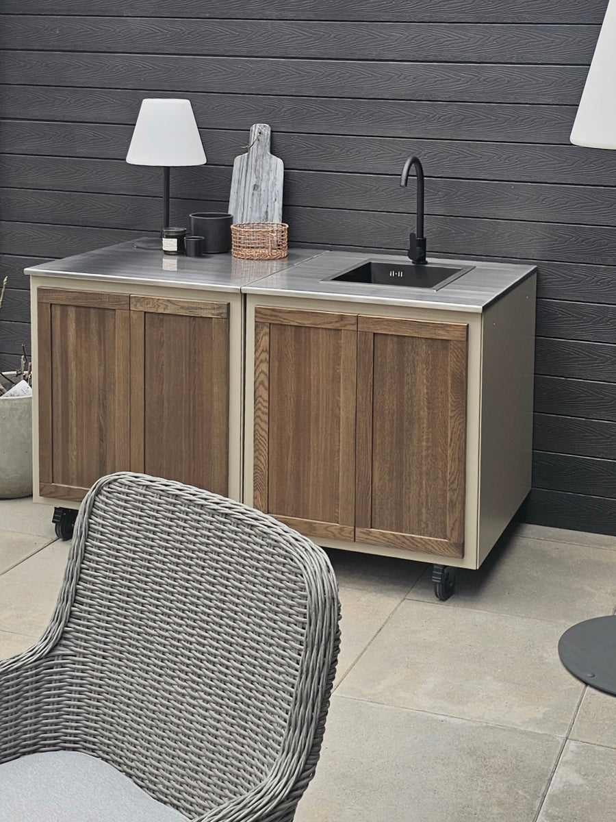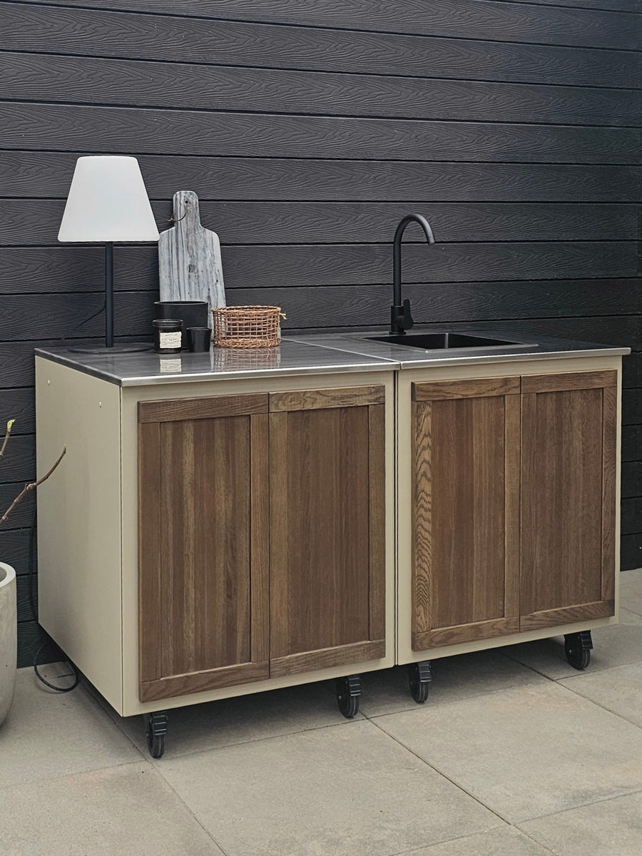 Gastro ulkokeittiömoduuli , beige alumiini / tammi / ruostumaton