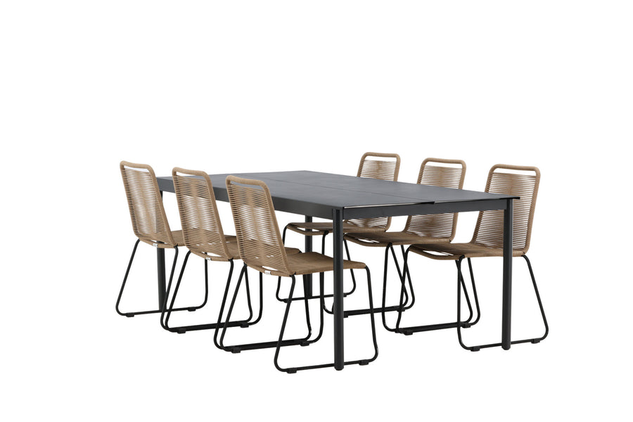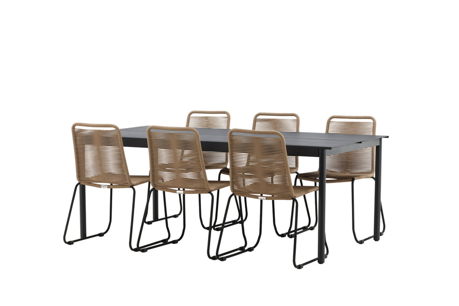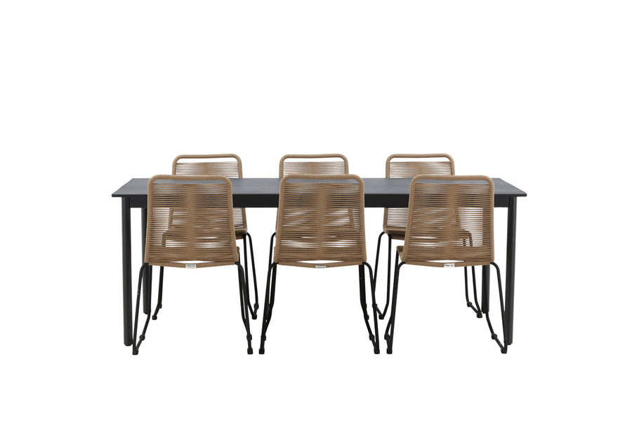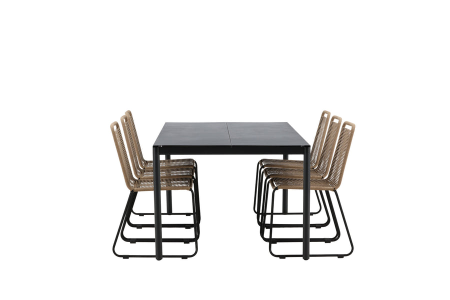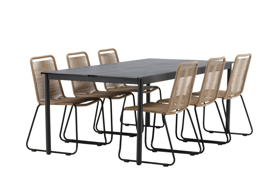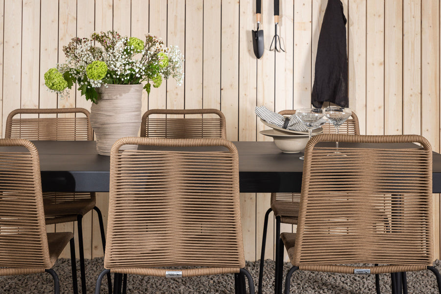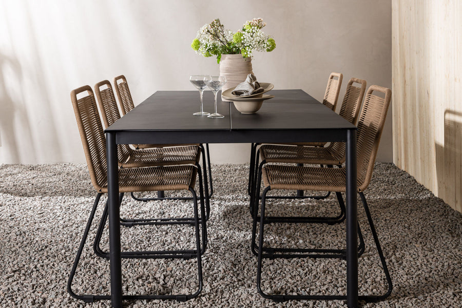 Modena ruokapöytä 200*100 - musta + Lindos ruokatuoli - musta alumiini / latte köysi
