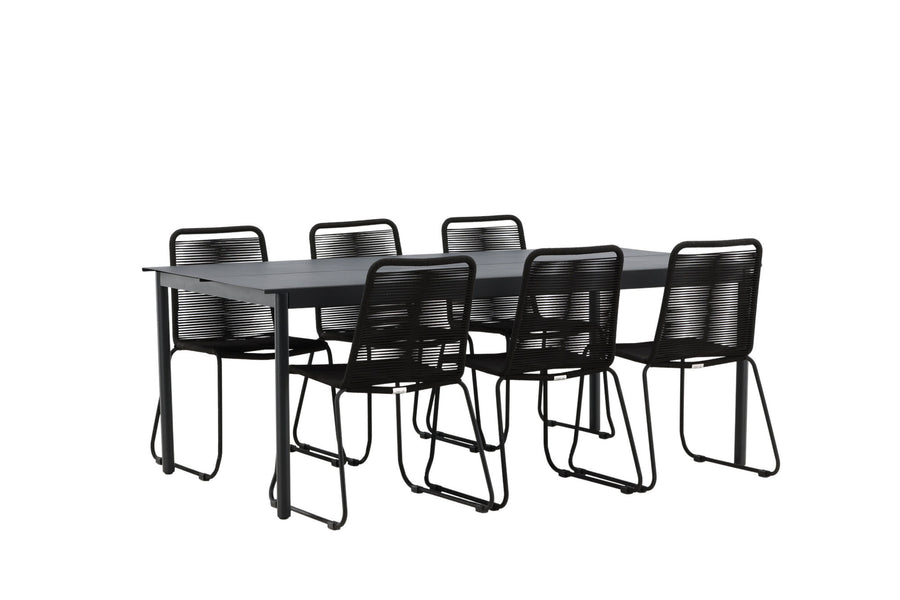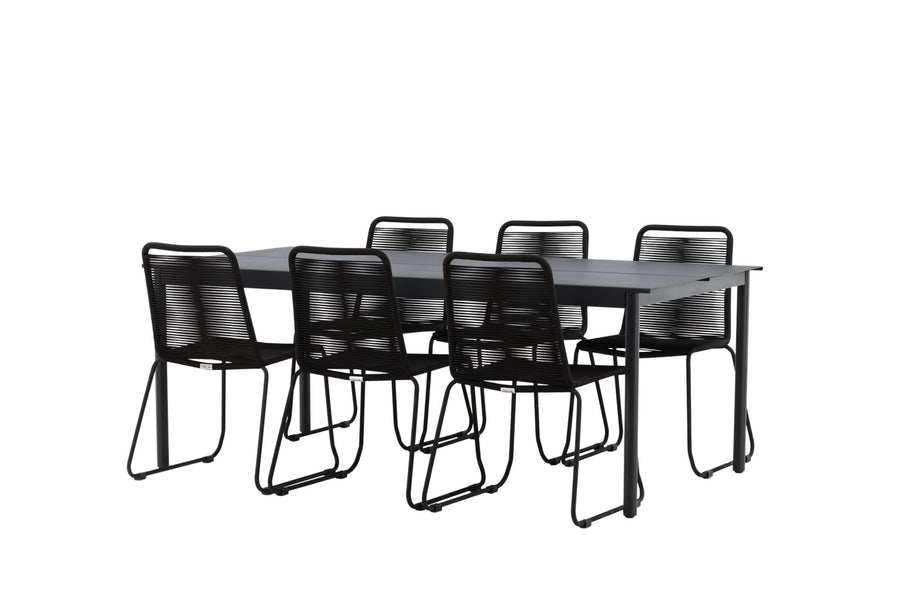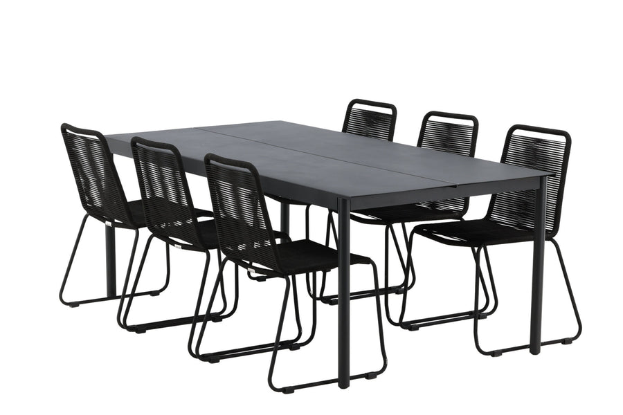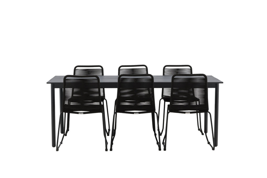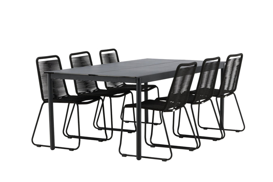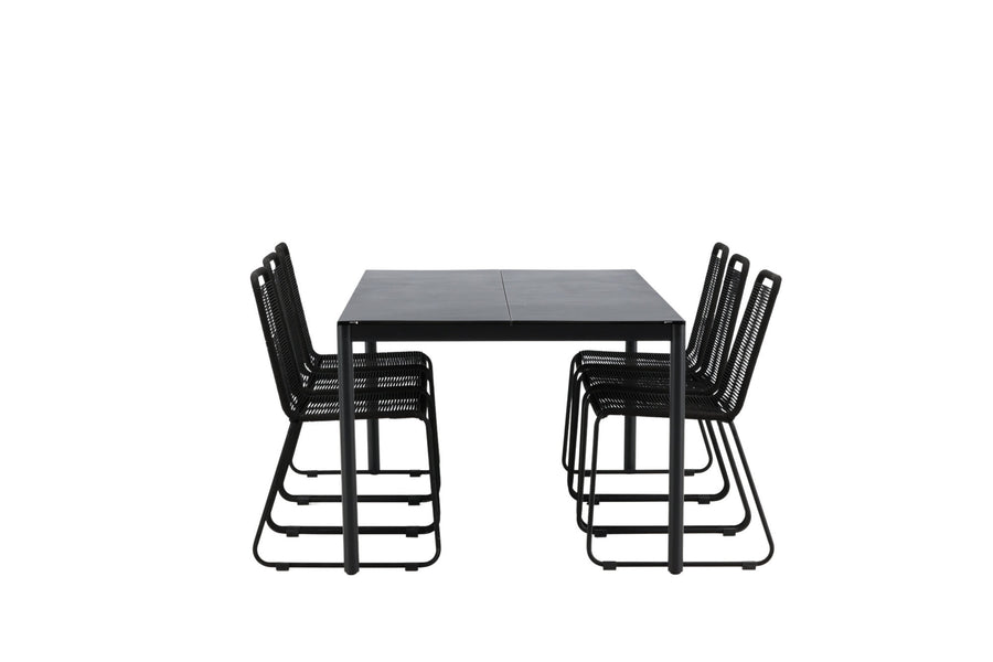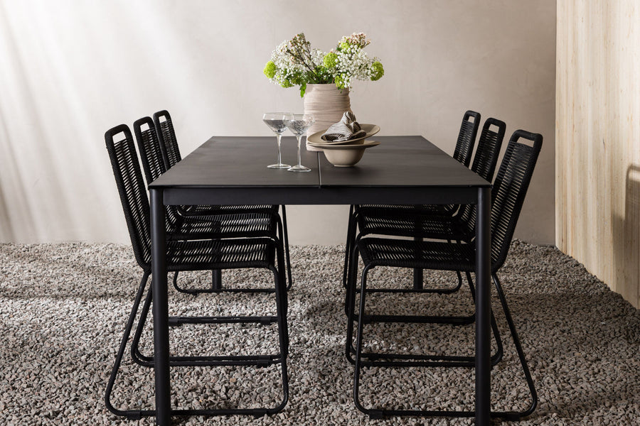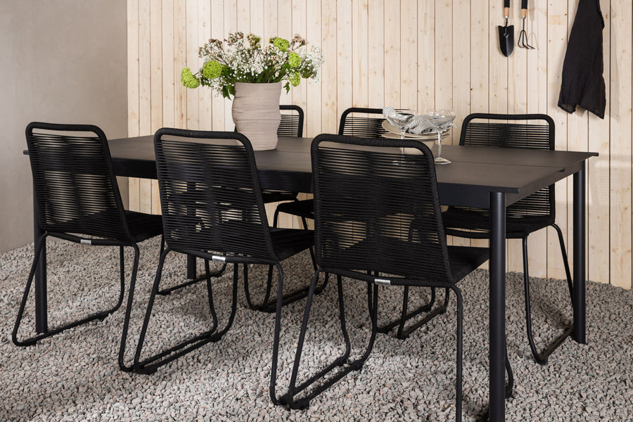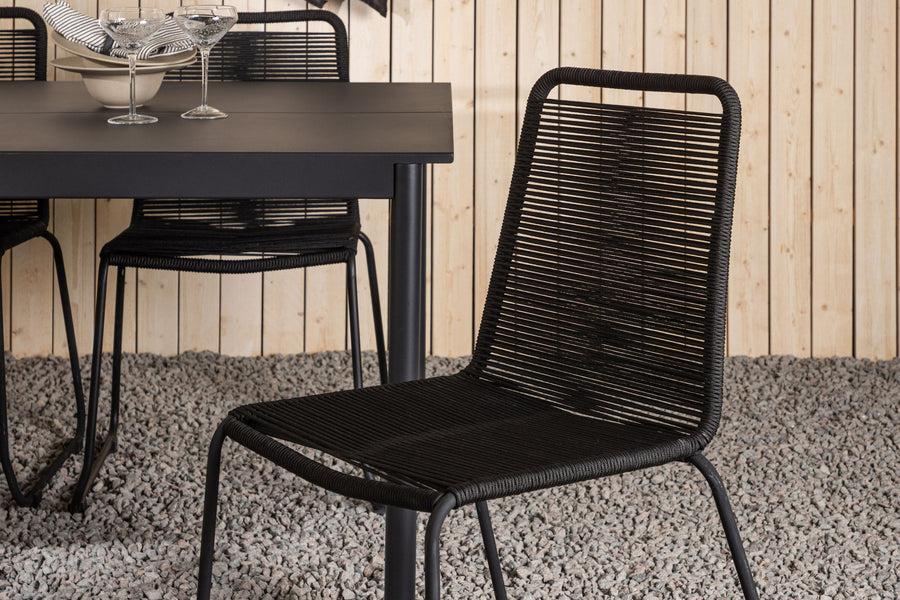 Modena ruokapöytä 200*100 - musta + Lindos ruokatuoli - musta / alumiini / köysi